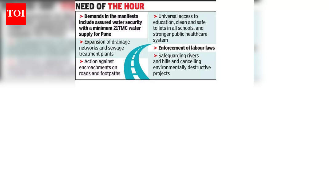 या गटाने म्हटले आहे की, निवडणुका “लोकशाहीची थट्टा” म्हणून कमी केल्या गेल्या, नागरिकांच्या मतदानाचा घटनात्मक अधिकार खोडून काढला आणि अल्प-मुदतीच्या प्रलोभने आणि टोकनिस्ट आउटरीचद्वारे महिलांच्या वास्तविक नागरी चिंतांना मार्जिनवर ढकलले गेले.“जाहिरनाम्यामध्ये स्वच्छ आणि लोकशाही निवडणुकांचे आवाहन करण्यात आले आहे. ते उत्तरदायी प्रतिनिधी आणि संरचनात्मक निवडणूक सुधारणांच्या गरजांवर भर देते, जसे की समानुपातिक प्रतिनिधित्व, राज्य-निधीच्या निवडणुका आणि पक्षांतर विरोधी कायद्याचे पुनरावलोकन,” प्रतिनिधी सुनीती एसआर यांनी TOI ला सांगितले.संपर्क समितीने महिला मतदारांना दबाव आणि प्रोत्साहनांचा प्रतिकार करण्याचे आवाहन केले आहे आणि उमेदवारांना सचोटीने आणि लोककल्याणासाठी सिद्ध वचनबद्धतेने पाठिंबा देण्याचे आवाहन केले आहे.जाहीरनाम्यातील इतर मागण्यांमध्ये पुण्यासाठी किमान 21 TMC पाणी पुरवठा, तसेच दीर्घकालीन टंचाईचा सामना करणाऱ्या भागात मोफत आणि वेळेवर पाणी वितरणासह पाण्याच्या सुरक्षेचा समावेश आहे. त्यात जल आणि वायू प्रदूषणावर कडक देखरेख आणि नियंत्रणासह ड्रेनेज नेटवर्क आणि सांडपाणी प्रक्रिया प्रकल्पांचा विस्तार करण्याची मागणी करण्यात आली आहे.जाहीरनाम्यात सार्वजनिक वाहतुकीची वैशिष्ट्ये ठळकपणे, प्रति लाख लोकसंख्येच्या किमान 30 बसेसपर्यंत बस सेवांचा विस्तार, अलीकडील भाडेवाढ मागे घेणे आणि CCTV कॅमेऱ्यांनी सुसज्ज सुरक्षित, सुसज्ज बस थांबे या मागण्यांसह. वाहतुकीची कोंडी आणि रस्ते आणि फूटपाथवरील अतिक्रमणांवर कठोर कारवाई करण्याची मागणीही जाहीरनाम्यात करण्यात आली आहे.सामाजिक क्षेत्रात, सनद शिक्षणासाठी सार्वत्रिक प्रवेश, सर्व शाळांमध्ये स्वच्छ आणि सुरक्षित शौचालये आणि एक मजबूत सार्वजनिक आरोग्य सेवा प्रणालीची मागणी करते. आरोग्यसेवेमध्ये सार्वजनिक-खाजगी भागीदारी (PPP) मॉडेल्सच्या विस्ताराला विरोध केला, त्याऐवजी नागरी आरोग्य बजेट दुप्पट करणे, मोहल्ला क्लिनिकचा विस्तार आणि नगरपालिका रुग्णालये मजबूत करणे.महिला कामगारांसाठी शहरी गरीब योजना, 100% घरोघरी कचरा विलगीकरण, सेटलमेंट स्तरावर बालसंगोपन केंद्रे आणि लैंगिक छळ प्रतिबंध (POSH) कायद्यासह कामगार कायद्यांची कठोर अंमलबजावणी करण्याची गरज या जाहीरनाम्यात अधोरेखित करण्यात आली आहे. नद्या आणि टेकड्यांचे रक्षण करणे, पर्यावरणास विध्वंसक प्रकल्प रद्द करणे आणि प्रदूषणमुक्त शहराच्या दिशेने ठोस पावले उचलणे या मागण्यांसह पर्यावरण संरक्षण हे आणखी एक महत्त्वाचे केंद्र आहे.संपर्क समितीने म्हटले आहे की जाहीरनामा शहरांमधील महिलांच्या जीवनातील अनुभवांचे प्रतिबिंबित करतो आणि त्याचा उपयोग उमेदवार आणि निवड