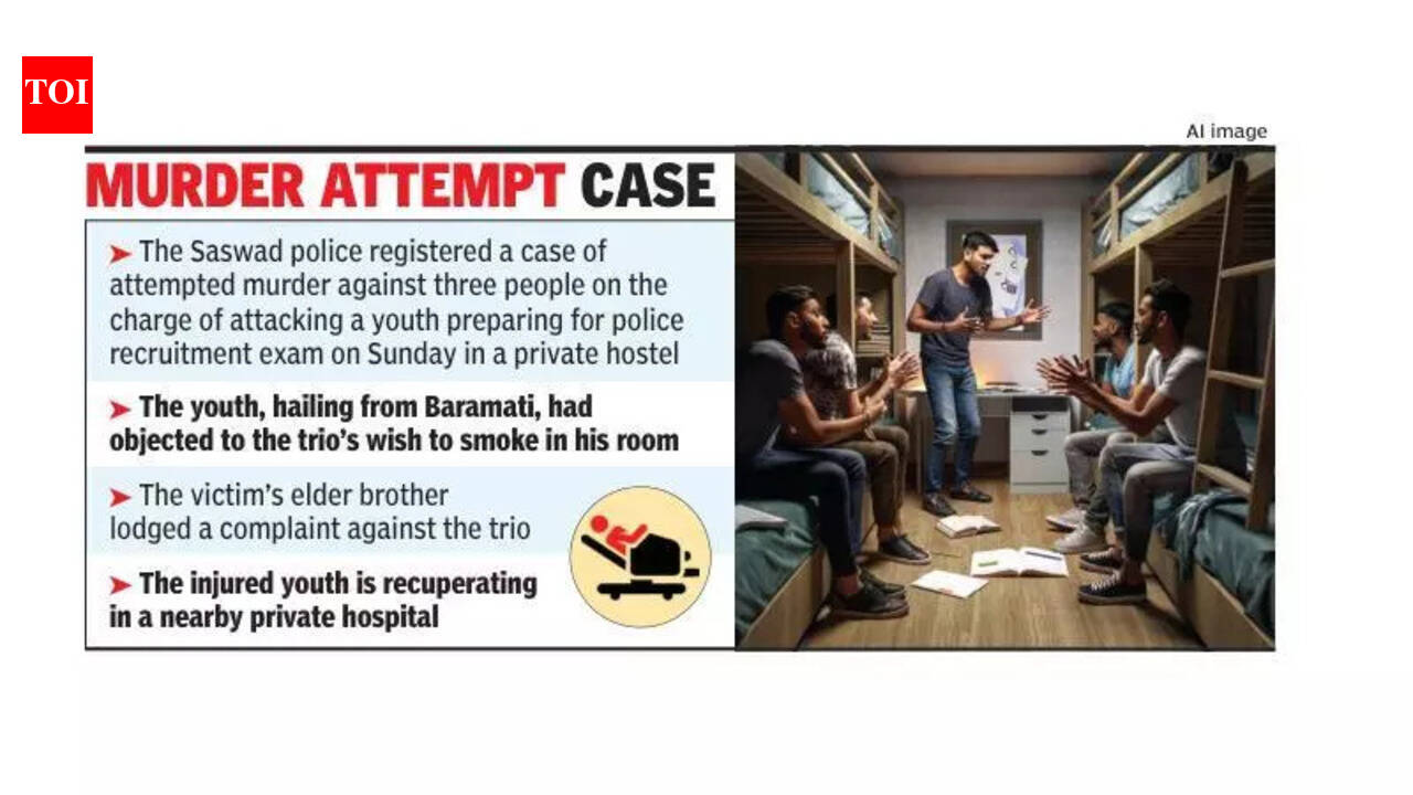पीडितेच्या रूममेटने त्याच्याशी संपर्क साधून रविवारी रात्री झालेल्या हल्ल्याची माहिती दिल्यानंतर पीडितेच्या मोठ्या भावाने तिघांविरुद्ध तक्रार दाखल केली. पोलिसांनी तीन हल्लेखोरांविरुद्ध खुनाच्या प्रयत्नाचा गुन्हा दाखल केल्याचे सांगितले.पीडित महिला बारामती येथील असल्याचे सासवड पोलीस अधिकाऱ्याने सांगितले. तो गेल्या एक वर्षापासून सासवडमध्ये पोलीस भरती परीक्षेची तयारी करत असून वसतिगृहात राहत होता.रविवारी रात्री पीडितेचे पूर्वीचे रूममेट्स त्याच्या खोलीत आले आणि त्यांना तेथे पार्टी करायची असल्याचे सांगितले. एका पोलिस अधिकाऱ्याने सांगितले की, “पीडित आणि त्याच्या इतर रूममेट्सनी त्यांना तसे करू दिले नाही.”त्यानंतर पीडित मुलगी जेवणासाठी मेसमध्ये गेल्याचे त्यांनी सांगितले. तो आपल्या खोलीत परतल्यानंतर तिघांच्या तिथे धूम्रपान करण्याच्या इच्छेवर त्याने आक्षेप घेतला. त्यानंतर पोलिसात नोकरीसाठी इच्छुक आणि अन्य तिघांमध्ये वाद सुरू झाला.“तिघांनी त्याला शिवीगाळ केली आणि धारदार शस्त्राने त्याच्यावर प्राणघातक हल्ला केला. पीडितेच्या मानेला आणि उजव्या खांद्याला गंभीर दुखापत झाली,” असे अधिकारी म्हणाले, पोलिसांनी दोन आरोपींची ओळख पटवून दिली आहे.