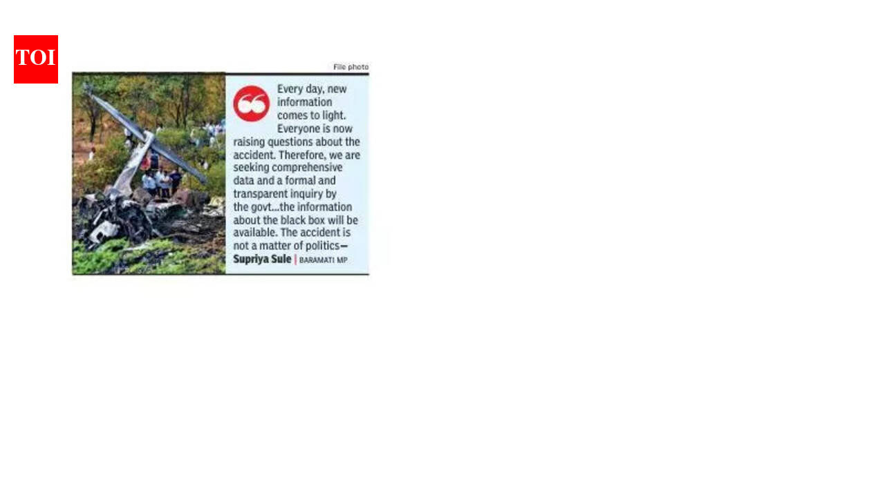 पुणे : माजी उपमुख्यमंत्री अजित पवार यांच्या निधनामुळे झालेल्या विमान अपघाताची सरकारने पारदर्शक चौकशी करावी, अशी मागणी बारामतीच्या खासदार आणि राष्ट्रवादी काँग्रेसच्या (सप) कार्याध्यक्षा सुप्रिया